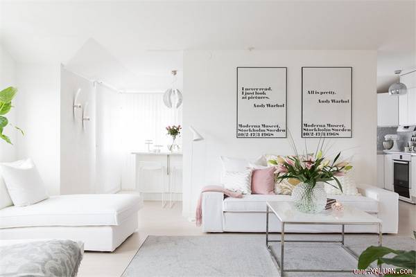 Mẫu căn hộ dưới đây được thiết kế theo lối hiện đại với sắc trắng làm tông màu chủ đạo. Sắc trắng được vận dụng vào mọi ngóc ngách của ngôi nhà từ phòng khách, nhà tắm, phòng ngủ đến những đồ nội thất tinh vi của căn hộ. Màu đen được sử dụng tạo nên những điểm nhấn nhá cho không gian sống thêm ấn tượng. Thiết kế nội thất của ngôi nhà cũng đặc biệt chú ý đến việc sử dụng những món đồ tối giản, mảnh nhỏ để mang đến cảm giác thanh lịch, hiện đại.