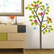 Bé bước vào phòng, và ồ lên thích thú, khi ngợp trong rừng cây hoa lá chen đua màu sắc! Những cái cây này các bậc cha mẹ có thể tự làm bằng miếng xốp nhuộm màu, cắt từ các loại đề can, hay tự vẽ lên tường. Chỉ cần ý tưởng, và một bức tường đủ rộng!